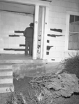 Pictured here is the fallout of an explosion that rocked the home of L. V. Johnson, an African American. The charge was placed near the front steps of the housing and it ripped siding, shattered windows, and uprooted shrubbery, as shown here.