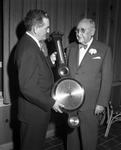 Pictured here to the left is Mr. John F. Canning handing a banjo barometer to Mr. E. H. Beall for his birthday at a buffet party at River Crest Country Club.