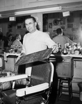 O. H. Nabors, barber, gave George Hart, 28, his first haircut.