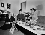 Mmes. J. Hulbert Smith, E. B. Collett and Elton Hyder Jr. left to right, discuss plans for a tea to be given by Pi Beta Phi at the home of Mrs. Joe Lydick.