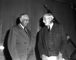 T. J. Harrell, left, vice president of the Fort Worth Chamber of Commerce, chats with Harmar D. Denny, vice chairman of the Civil Aeronautics Board, before Denny addressed a joint meeting of the chamber and the Kiwanis Club at Hotel Texas.