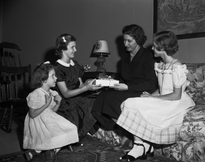 A gift for Mother on Her Day: Alann, the oldest; Frances, the middle girl, and little jean offer tribute to their mother, Mrs. Charles F. Bedford 4729 Collinwood.