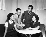 Three members and a guest of the Southwestern Korean Students Association which was formed in Fort Worth discuss plans for the group. Left to right are Miss Hi Hyun Chain of Southwestern University in Georgetown, Dr. Pill W. Hong of Baylor University Hospital in Dallas, Lieutenant Choong Kun Cho, a guest from Fort Sill, Oklahoma, and Miss Yong Soon Dong.