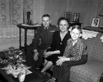 Colonel and Mrs. Emil A. Zund and son, Joe have their photograph taken in their home after their temporary stay in Japan. Published in Fort Worth Star-Telegram morning edition March 5, 1950.