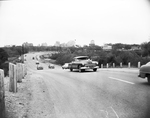 Image shows temporary crossing over Trinity River's Clear Fork, just north of the old West 7th Street bridge which was closed for repairs and had successfully met the traffic demands placed on it, declared by engineers and traffic officials. The revamped West 7th Street bridge was opened in summer 1954.