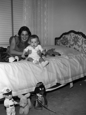 Posing for heir published picture together are Mrs. Shirley Geren, the first wife of Preston M. Geren Junior, and their son, Charles Preston, both of 5220 Byers. Mrs. Geren is former Miss Shirley Lupton (later in life known as Mrs. Shirley Lupton Holmes). Published in Fort Worth Star-Telegram morning edition May 14, 1950.