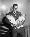 Robert Bedwell (27), Marine Corps veteran, went to San Antonio and seized his twin sons and brought them to Fort Worth. His estranged wife, Mrs. Loyce Bedwell (18), has obtained a court order for their return. The babies, Ronald Jay Bedwell, left, and Donald Clay Bedwell, shown in their father's arms, were a month old.