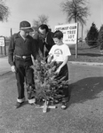 Charles Clounch (11), left, and Tommy Janes (10), inspect a Christmas tree which was sold from the Optimist Club lot at Farrington Field. Harlan Wilkinson worked with other Optimist Club members in selling trees when the lot opened.