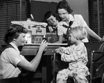 A doll house, completely decorated for Christmas, won a tricolor for Ki-Ne-Top-Ko Camp Fire group at a flower show held by Bluebonnet Garden Club. And the group took their winner to Cook Children's Hospital to be enjoyed by the young patients during the holidays. Left to right, Mary Woolsey, Linda Bodiford and Caron white are showing a little patient, Sandra Kay Allen, 5, what's in the house.