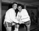 William Smith, left, and Bobby Leach, at gym. They are both preparing for the coming up Golden Gloves. Published in Fort Worth Star-Telegram evening edition January 06, 1954.