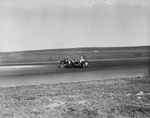 Carroll Shelby (11) and Roy Scott (88), early pace-setters in the feature sports car race at Eagle mountain National Guard base, cut it close and tight around a hay bale turn. Shelby finished second to Riddelle Gregory, Scott dropped out with transmission troubles on the 19th lap.
