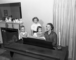 Mrs. P. D. Henry and children, Gordon, 8, Lucille,11, and Martha, 5, singing Christmas carols. Their mother is a singer and the piano in their home is the center of much music.. Published in Fort Worth Star-Telegram morning December 20, 1953.