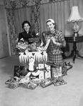 Mrs. Russell McDaniel, left, and Mrs. Lambreth Tomlinson pack presents given by the Circle of First Christian Church to patients in pediatrics at City-County Hospital during Christmas party.
