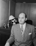 Image shows Kenneth Kellam wearing formal suit and sitting on office chair in an office.