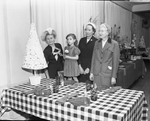 Viewing the popcorn Christmas tree table in the Fort Worth Garden Club's holiday table show at River Crest Country Club are, left to right, Mrs. Alfred McKnight, who gave the show, her granddaughter, Patricia McKnight, and Mrs. Arthur Chase, and Mrs. Ted Wilson, both of Houston. Mrs. McKnight guests for the show. Published in Fort Worth Star-Telegram evening edition December 11, 1953.
