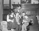 Three Lena Pope Home children listen to Jaycees Eddie Mayes, standing, and Roy Tavender tell about the party the club has planned. The children, left to right, are Minnie Belle Malone, 13, Ralph Ellis, 9, and Charles Vernon Latham, 4. Published in Fort Worth Star-Telegram morning edition December 13, 1953.