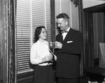Irby Crawford presents Westcliff Elementary School's safety cup to Student Chris Clarke. Published in Fort Worth Star-Telegram evening edition, December 15, 1953.