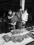 Mrs. G. W. French Jr., wife of the pastor of Weatherford Street Methodist Church, holds her son, Gary Wayne, and Reverend C. A. Warden, director of the Wesley Foundation at Arlington State College, holds his daughter, Beth Elaine, at the Fort Worth Ministers' Wives Club Christmas party.