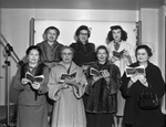 Representatives of five music clubs, members of Texas Federation of Music Clubs, who will carol at USPHS Hospital. They are, left to right, front row: Mrs. Roy Nussbaum, state chairman of music service in hospitals; Mrs. H. B. Wilkerson of the Euterpean Club; Mrs. R. C. Schulte, Ridglea Music Club, and Mrs. R. N. Grammer, University Place Music Club. Back row: Mrs. H. C. Dechard, Harmony Club; Mrs. Claude Helm, district chairman of music service in hospitals, and Mrs. M. W. Beckman of Music Study Club.