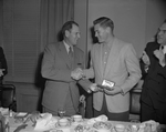 Abe Martin (Left) and Malvin Fowler (Right). Two men wearing suits, smiling and handshaking each other.