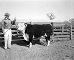 The photograph shows Glasson with Mixer Gwen 6th, main herd sire at the BB ranch.