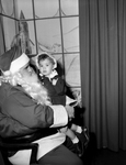 Three year old, Judy Yates, is shown talking to Santa Claus. Published in Fort Worth Star-Telegram morning edition, December 20, 1953.