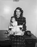 Cecilia Twyman hold one of the two arrangements with which she won purple ribbons in the recent Christmas flower show for McLean Junior High School students.