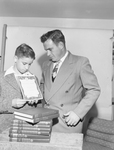 Maddox Avenue Children's Home was one of two institutions in the year to be given a set of Britannica Junior by the encyclopedia firm. A. E. Williams, superintendent of the home, is shown with one of the institution's wards, Herman Hamlett. Published in Fort Worth Star-Telegram morning edition December 20, 1953.