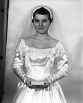 Mrs. Joseph R. Riley is shown wearing her wedding gown while she smiles at the camera. She is holding a Bible, instead of a typical flower bouquet. Published in Fort Worth Star-Telegram morning edition, December 25, 1953.