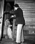 Workers delivering bags of gifts. Some children shyly waited at their doors for your Goodfellow sacks as they were delivered.
