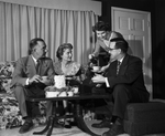 Mr. and Mrs. Dan Lydick, and Mr. and Mrs. Joe Lemons, left to right, were co-host at a holiday open house held at the home of the Lydicks. Mr. and Mrs. Lydick also will entertain 50 guests at a brunch during New Year's Day at the Lydick home. Published in Fort Worth Star-Telegram evening edition, December 31, 1954.