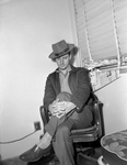 Norman Davenport, a desperado is shown posing for the camera while sitting on a chair. Published in Fort Worth Star-Telegram morning edition, December 28, 1953.