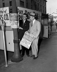 Al Gary, left, and Jess Bowen put up a sign from the Junior Chamber of Commerce reminding Fort Worth residents to pay their poll tax now. The signs were put on street posts in the downtown area. Published in Fort Worth Star-Telegram morning edition, December 29, 1953.