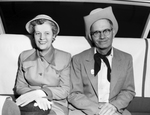 These Lubbock residents and Texas Tech rooters started their long journey to Jacksonville, where they'll watch the New Year's Day Gator Bowl game between Tech and Alabama Polytechnic- better known as Auburn. They are Mr. and Mrs. Dick Roundtree. Published in Fort Worth Star-Telegram morning edition, December 29, 1954.