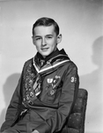 Jimmy Burtschi, boy scout is pictured in his uniform and badges. Published in Fort Worth Star-Telegram morning edition, December 30, 1953.