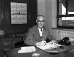 Shown sitting at his desk and writing on a paper is Dr. W. E. Logan. Published in Fort Worth Star-Telegram evening edition, December 31, 1953.