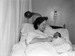 Mrs. Jack Christian, 3729 Ave. H, holds her 8-pound son, the first infant born in Fort Worth in 1954. The baby, unnamed because the parents were expecting a girl, was born at 20 seconds after midnight. Published in Fort Worth Star-Telegram evening edition, January 1, 1954.