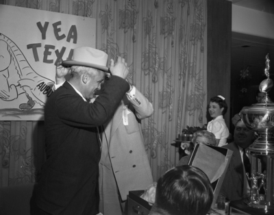 Amon carter with Texas Tech rooters and coaches after Raiders won victory in Gator Bowl Florida.