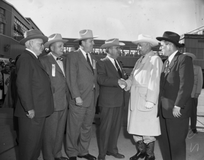 Amon carter with Texas Tech rooters and coaches after Raiders won victory in Gator Bowl Florida.
