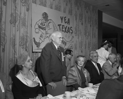 Amon carter with Texas Tech rooters and coaches after Raiders won victory in Gator Bowl Florida.
