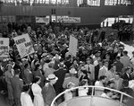 A portion of the big crowd which swirled over Amon Carter Field to congratulate the winners of the Gator Bowl is shown. Note the signs in the background expressing pleasure for the job Texas Tech did against Auburn. Published in Fort Worth Star-Telegram morning edition, Jan 3, 1954.