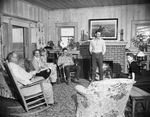 W. R. Watt, left, president-manager of the Southwest Exposition and Fat Stock Show, is pictured in his ranch home near Throckmorton, with left to right next to him, Mrs. Watt, Bob and Tommy Watt, and Miss Marianne Selden of Vienna, Austria. Published in Fort Worth Star-Telegram morning edition January 4, 1954.
