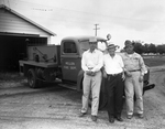 Proceeds from a pie supper at the Keller High School gym was used to make a payment on the town's fire truck. Standing, left to right, by the town's new truck are Captain W. L. Blevins, Chief Charley Wilkinson and Assistant Chief J. C. Samsill.