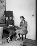 Two members of the ticket committee for the forthcoming Jewel Charity Ball, to be held Jan 30 in the Crystal Ballroom of Hotel Texas, are Mrs. Gordon Harriman, left; and Mrs. Burford I. King, right, chairman. Proceeds from the ball will be given to the women's board of the Fort Worth Children's Hospital for charity work. Published in Fort Worth Star-Telegram evening January 08, 1954.