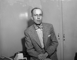 Portrait of Cecil Bryan. He is shown sitting on top of a desk as he poses for the camera. Published in Fort Worth Star-Telegram morning edition, January 7, 1954.