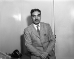 Portrait of E. W. Franklin. He is shown sitting on top of a desk as he poses for the camera. Published in Fort Worth Star-Telegram morning edition, January 7, 1954.
