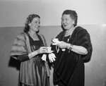 Mrs. Harold Nowlin, left and Mrs. Galen McKinney enthusiastically discuss the performance of Humperdinck's "Hansel and Gretel" while sipping coffee served between acts by the Fort Worth Opera Guild. Published in Fort Worth Star-Telegram morning January 09, 1954.