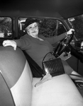 Mrs. Edna Gladney is shown in her new automobile. Published in Fort Worth Star-Telegram morning edition January 8, 1954.