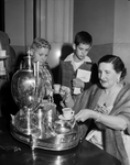 Relaxing between acts of the Fort Worth Civic Opera Association's production of Humperdinck's "Hansel and Gretel" were, left, James Hudgins, left Thomas Brown and Mrs. Floyd Hatfield, who is pouring coffee. Published in Fort Worth Star-Telegram morning January 09, 1954.