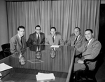 Recently elected officers of the Fort Worth Geological Society, left to right, are: W. L. Gupton, Texas Pacific Coal and Oil Company, secretary; R. H. Rantala, Brown and Wheeler, second vice president; M. D. Mauck, Pure Oil Company, president; T. A. Hendricks, Stanolind Oil and Gas Company, first vice president, and K. W. Nickerson Jr., McElroy Ranch Company, treasurer. Published in Fort Worth Star-Telegram evening January 10, 1954.